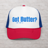 got butter? stand out from the crowd with this red, white + blue foam trucker — tracy’s favorite for butter-making days. made with high-quality polyester + foam for a premium look and feel, it’s got an adjustable snap for comfort and a mesh back for breathability. the matching braid gives it that extra oomph. one size fits most, mellow vibes included.
