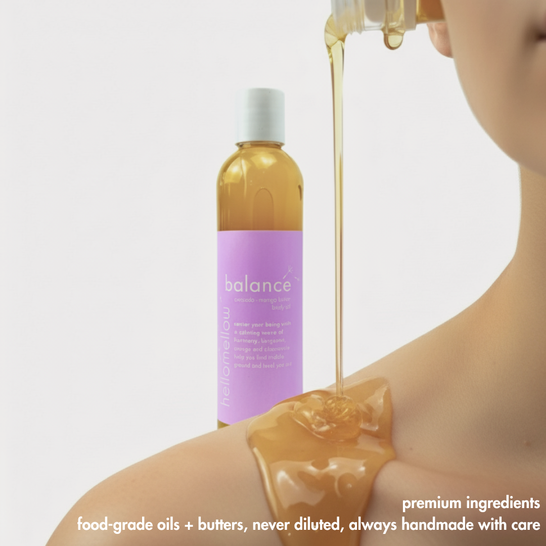 dry, crepey, itchy, or irritated — most body oils are just fancy-feeling silicones or cheap seed oils that sit on top of skin and disappear. hellomellow is different. our body oil is packed with nutrient-rich plant oils plus a dose of our avocado + mango butter, so it soaks in deep to restore hydration, strengthen your skin barrier, and keep moisture locked in all day.