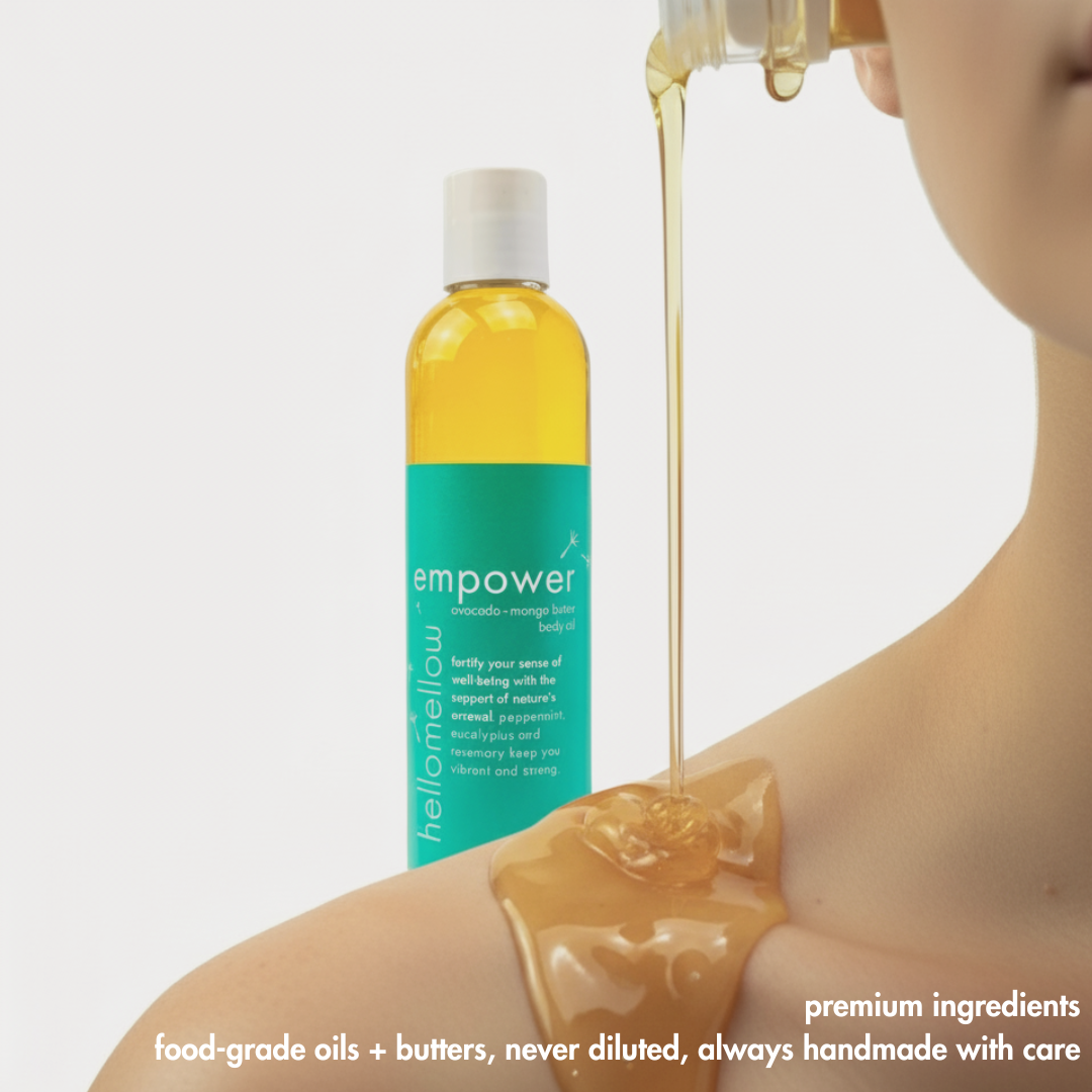 dry, crepey, itchy, or irritated — most body oils are just fancy-feeling silicones or cheap seed oils that sit on top of skin and disappear. hellomellow is different. our body oil is packed with nutrient-rich plant oils plus a dose of our avocado + mango butter, so it soaks in deep to restore hydration, strengthen your skin barrier, and keep moisture locked in all day.