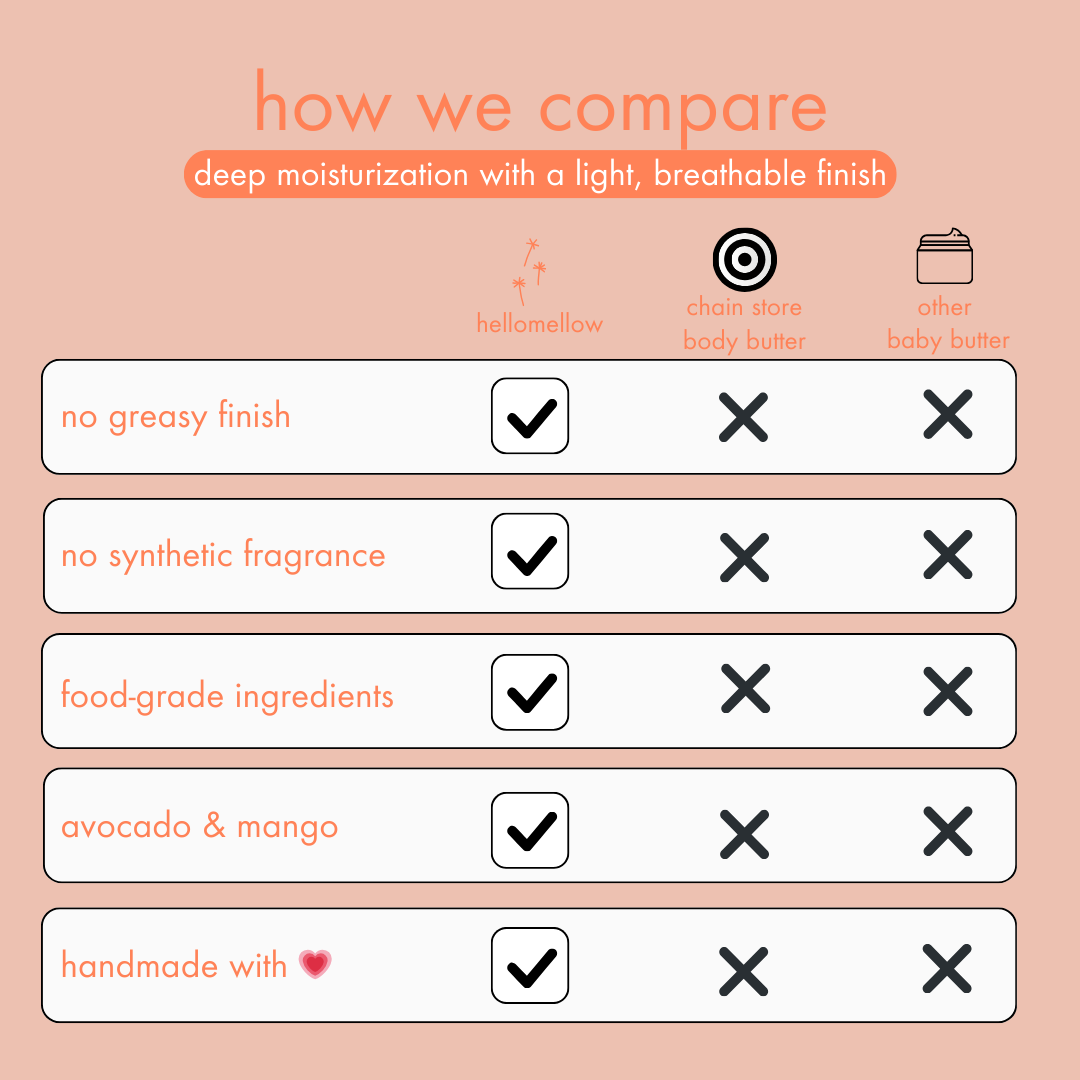 Our scents are thoughtfully crafted to embody the essence of hellomellow—subtly enriching. Our fragrances are designed to be pleasantly discernible, without overwhelming.