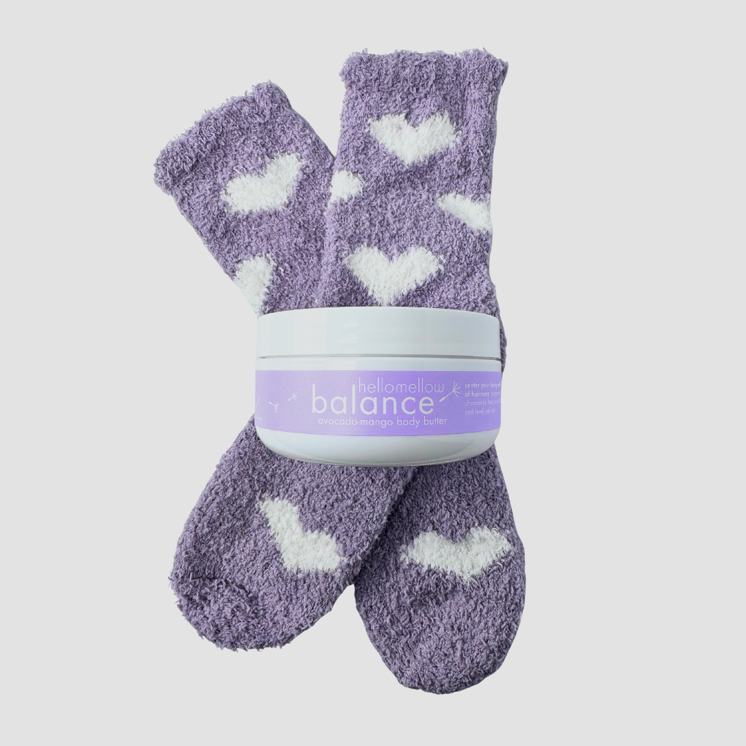 each set includes six full-size, spa-inspired products crafted in your chosen intention: a pink himalayan body scrub, body oil, body butter, energy shifting spray, bath salt, and lip butter β plus a bonus pair of cozy socks for your nightly butter-feet ritual.