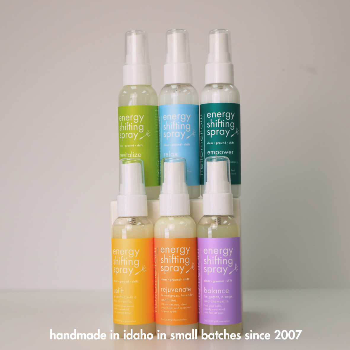 mist around your home, workspace, car, or anywhere that needs a reset. spray into the air, on fabrics, or onto your yoga mat, towels, or sheets to instantly refresh the energy and your mood.