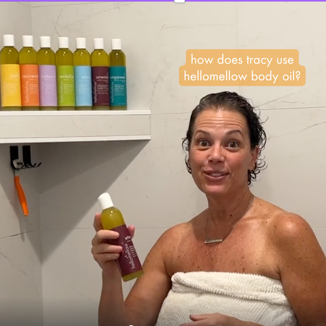 tracy reaches for hellomellow body oil every single morning, sealing in hydration after the shower and keeping her skin nourished, resilient, and strong through the years