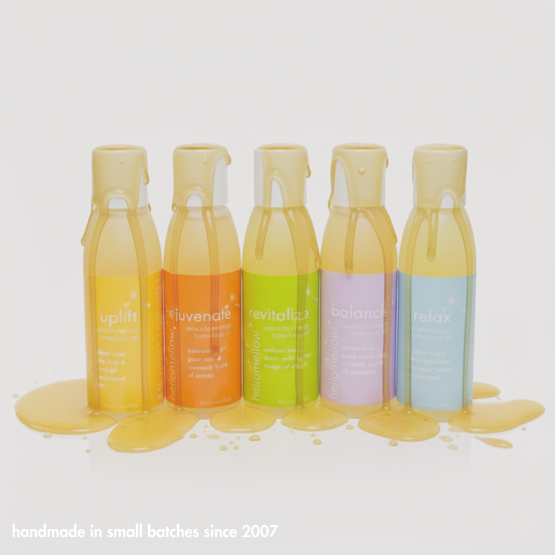 dry, crepey, itchy, or irritated — most body oils are just fancy-feeling silicones or cheap seed oils that sit on top of skin and disappear. hellomellow is different. our body oil is packed with nutrient-rich plant oils plus a dose of our avocado + mango butter, so it soaks in deep to restore hydration, strengthen your skin barrier, and keep moisture locked in all day.
